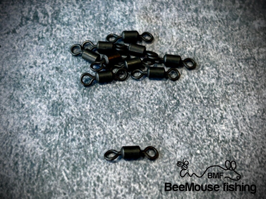 Rolling Barrel Swivels with a matt black non reflective coating.