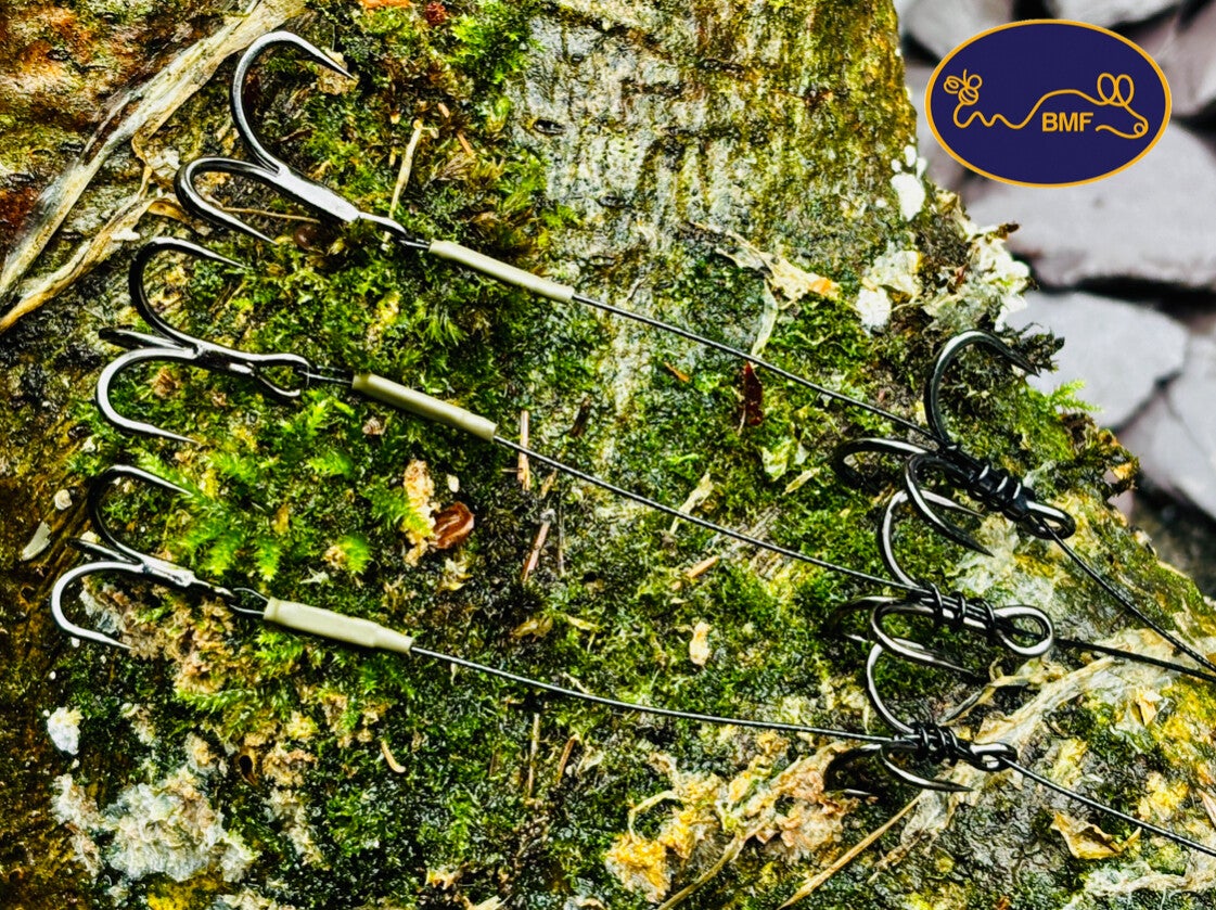 Our new look predator trace are available in size 6, 4 and 2. Built on 49 strand, black nylon coated 30lb or 45lb wire. Featuring two of our hornet treble hooks, with a wire length of 18 inches long which meets the requirements for all popular predator venues. The gap between the hooks is 3 inches and finished in down toned green sleeves to help them blend in with their surroundings.