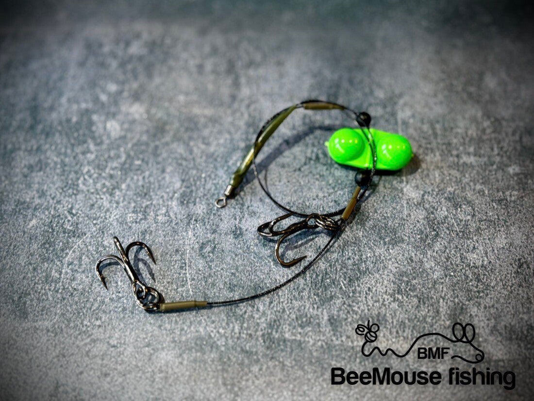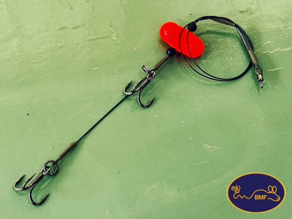 Our rattle rigs are designed to give your baits that little extra attraction that could be the difference between a blank and a net full. All built on a 49 strand 45lb black nylon covered wire for longevity and fitted with split rings to change the hooks when needed. They come with our size 4 hornet trebles fitted with either a red, black or green rattle.