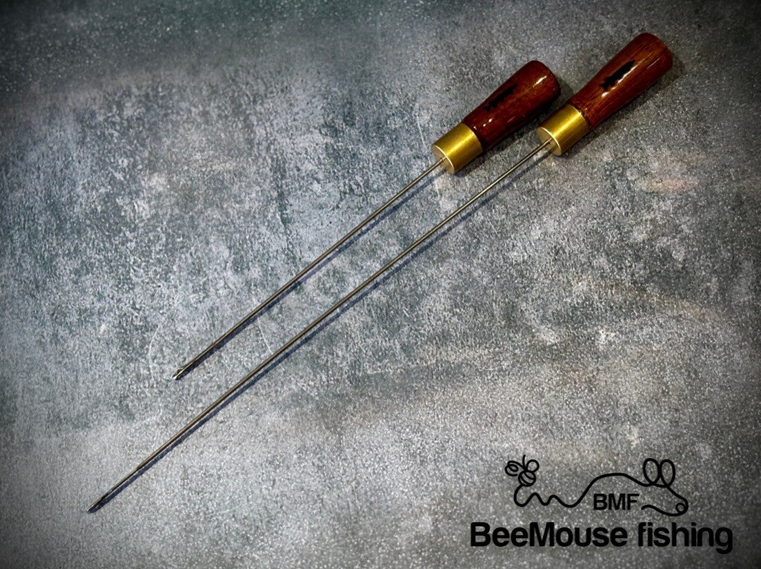 Our new dedicated deadbait rigging needles. Available in large with a 5inch needle 7inch total length. Or for your bigger baits we do an extra large, with an 8 1/2inch needle, 10 1/2inch total length. All finished with a walnut and brass handle, laser etched pike silhouette and logo.